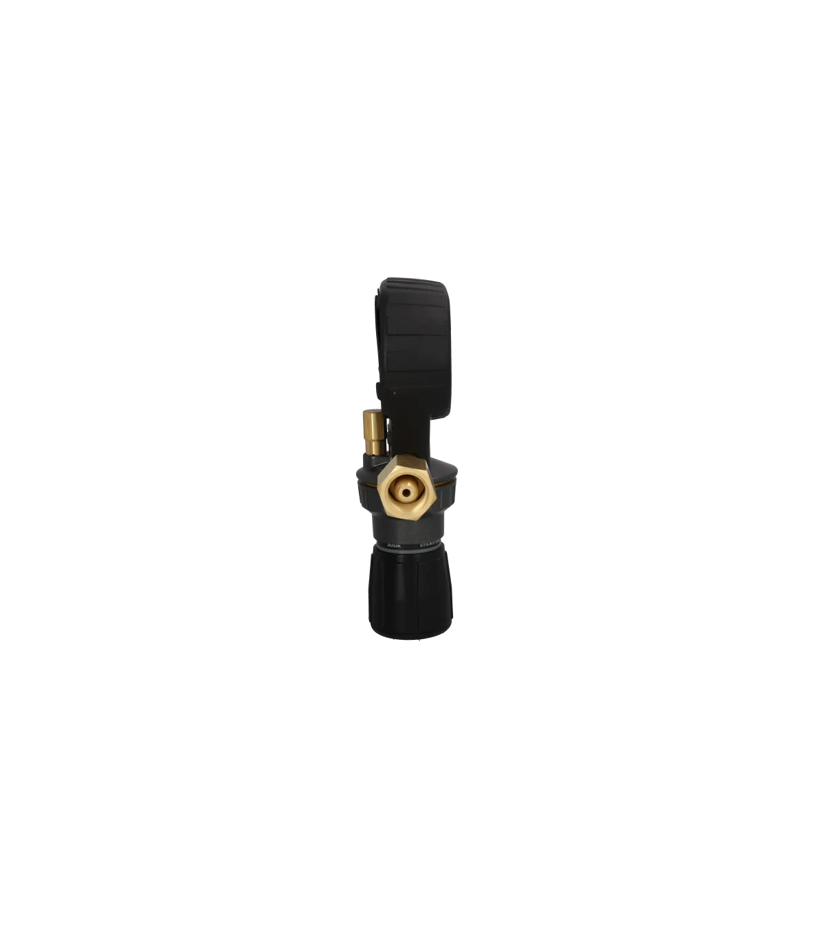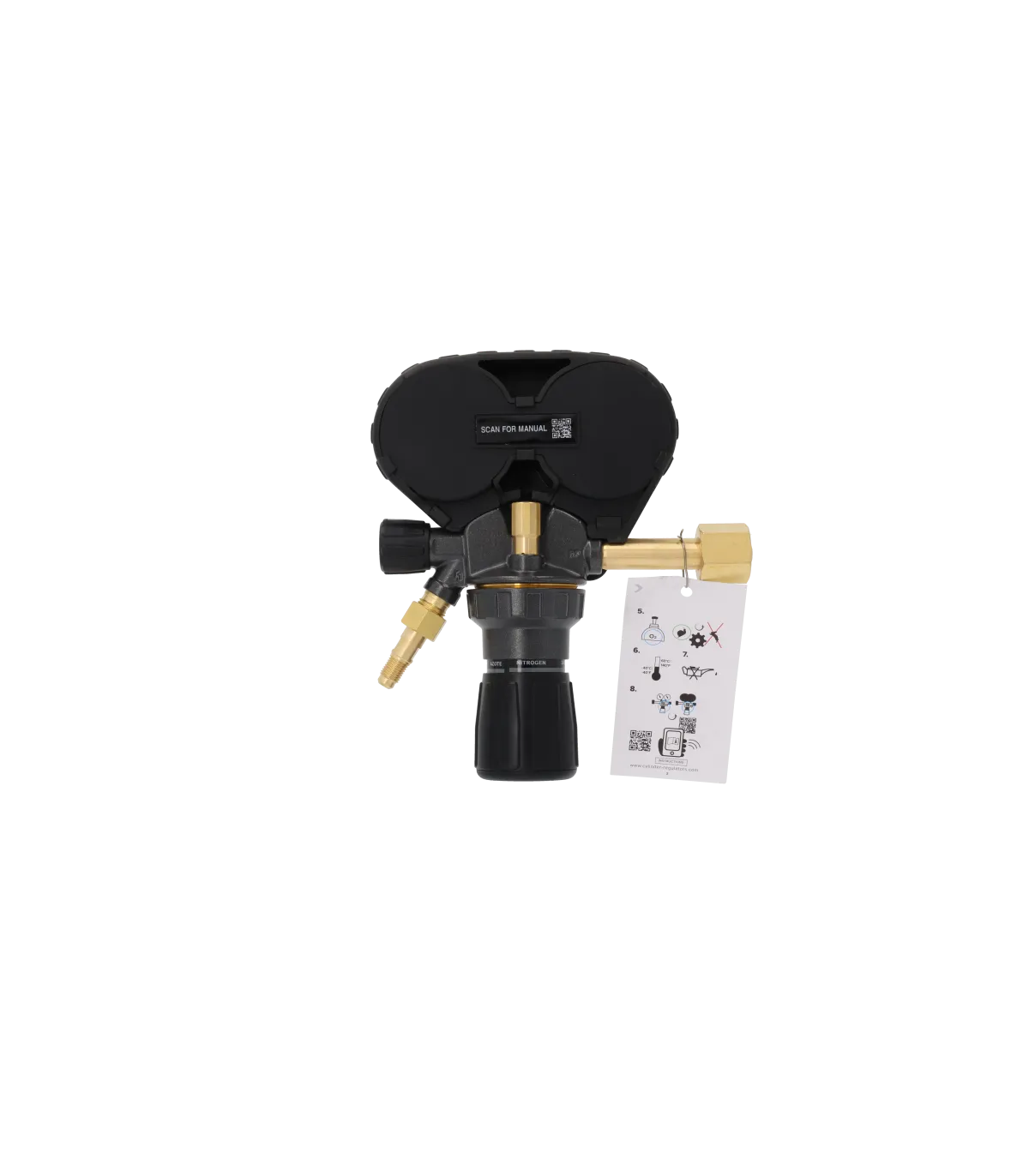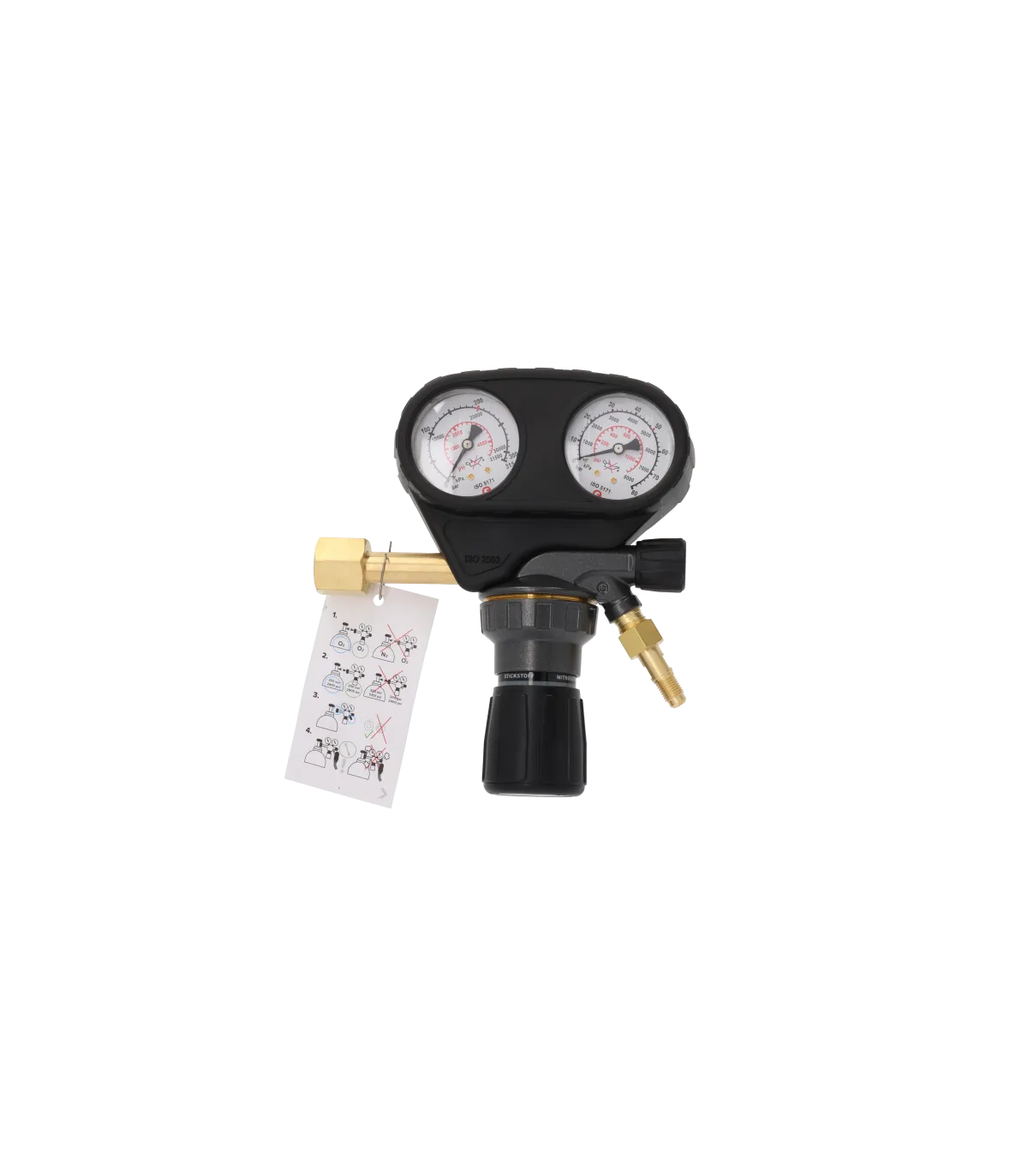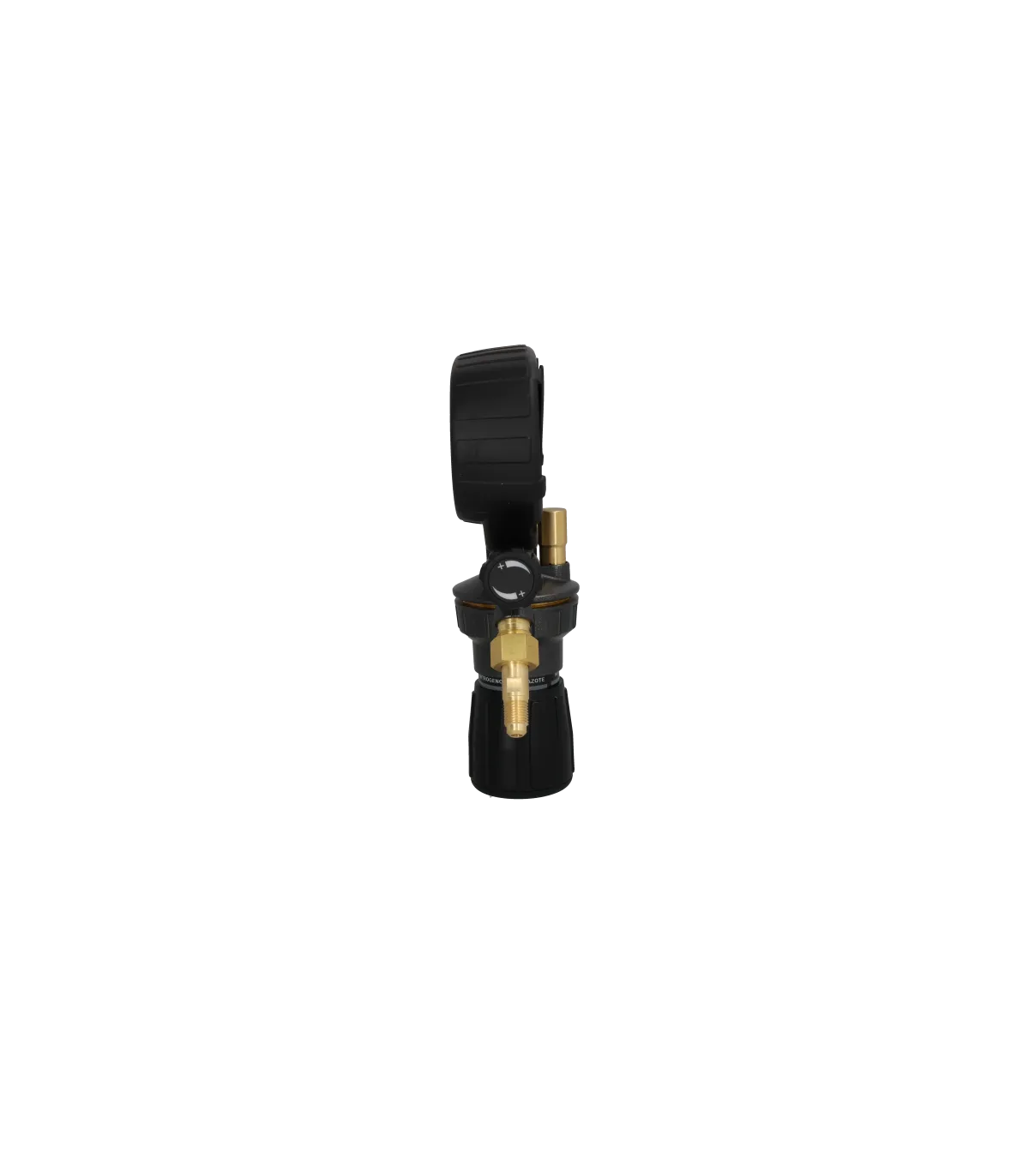 RS-750 Régulateur d'azote 50 bars. Pression d'entrée maximale de 300 bar et plage de 0 à 50 bar à l'évacuation, contrôlée par un gros bouton de réglage de la pression. Compact et robuste avec des entourages en caoutchouc pour protéger les manomètres.